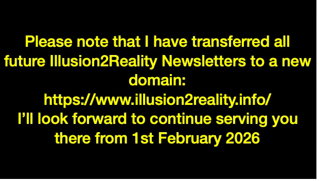 MY SUBSTACK ILLUSION2REALITY NEWSLETTER IS NOW CLOSED AND HAS MOVED TO A NEW DOMAIN: - https://wwwillusion2reality.info